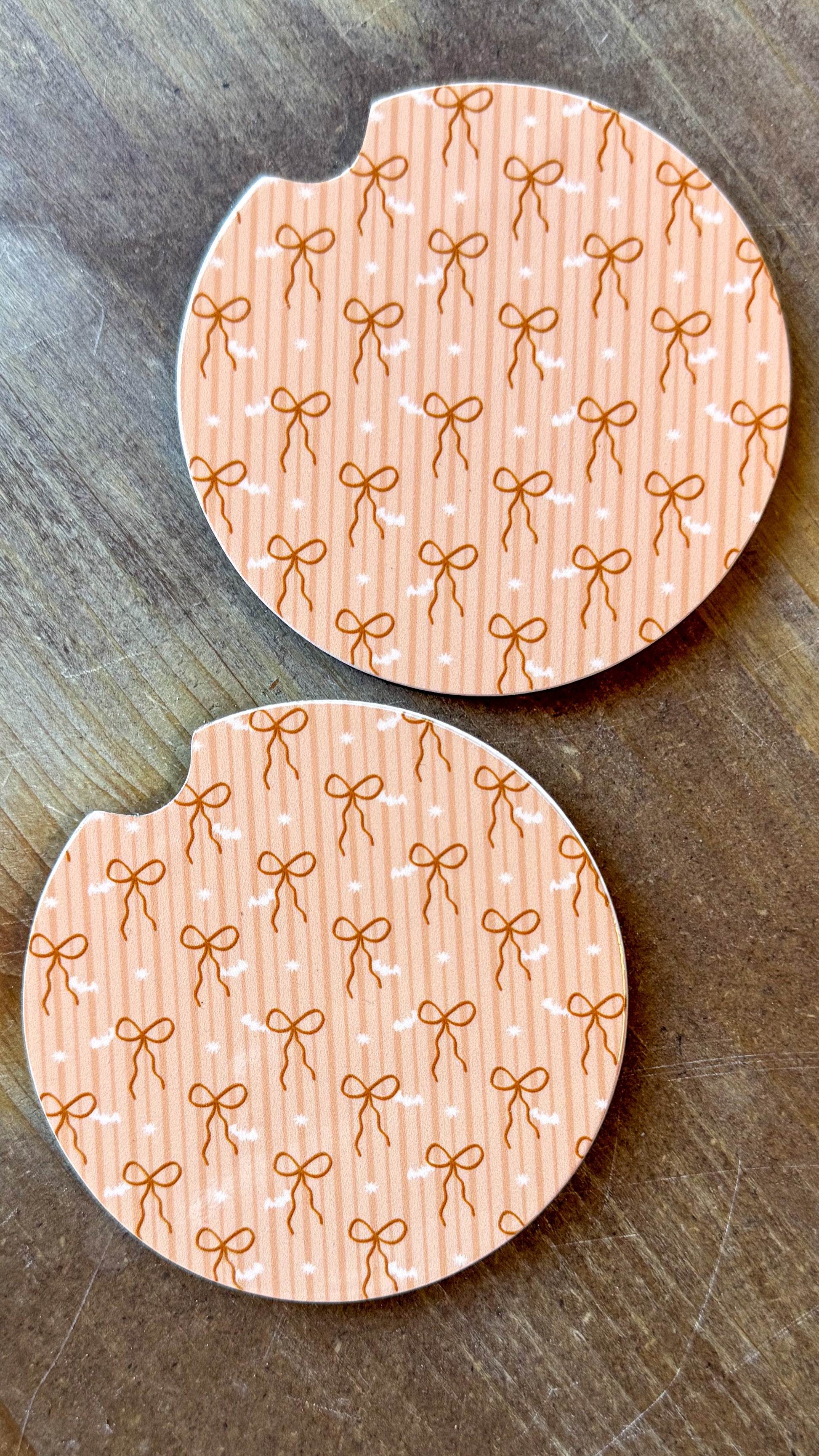 Your car called… it’s tired of being basic. These handmade wooden car coasters are here to bring a little sass and style to your daily drive. At 2.75 inches across and 0.15 inches tall, they fit most cup holders perfectly—because even your iced coffee wants to sit pretty.